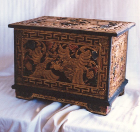 Cofre de madera, piedra, arcilla o metal en cuyo interior se colocan las cosas sacralizadas o los símbolos de un ceremonial.