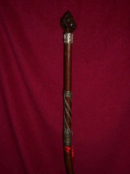 Cetro ritual compuesto por tres piezas que unidas lo conforman, y cuyo símbolo es LA AUTORIDAD DE LA LUZ SOBRE LA MATERIA, la clave de la transmutación y la llave que abre las puertas de la Luz y que acceden a la contemplación de la Divinidad CARA A CARA.
