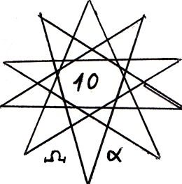 El 10 se refiere a la totalidad en su movimiento y connota los grandes arquetipos de su articulación interior y secreta. Con todo, en el interior del 10 se halla, de algún modo, la dualidad del 5; ello le confiere la dinámica especial de aquel número.