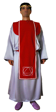 El hábito de este Cargo no vitalicio consta, según la parte no publicada del A.D.A.M.A., de un túnica confeccionada en tela malva claro (la Transmutación luminosa) al igual que sus sandalias , una estola de 26 centímetros de ancho, en color rojo y bordeada con una cinta blanca (la pureza que circunda la vida, la enseñanza y la Lucha para superar las pruebas). En esta estola, en su parte inferior delantera se observa un sello que simboliza la unión de lo profano y lo Sagrado, la unificación de lo Celeste en el interior de la materia y que por consiguiente es Elevada hasta el Cielo. Luce también un cinturón rojo y una tiara áurea con una amatista frontal engastada (la transmutación que debe estar presente en los pensamientos hasta convertirlos en Luminosos).