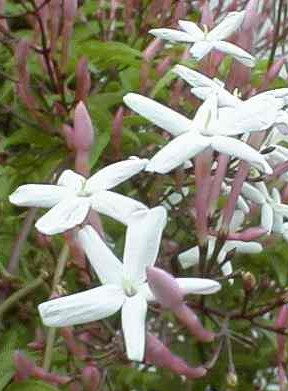 Entre sus muchas variedades, las clases de jazmín más apreciadas son; el Jasminum Officinale (de Asia Menor y Persia) y Grandiflorum (de España) sus flores generalmente son blancas y sus capullos violetas.