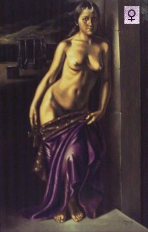 Se representa por la Luna (intuición, maternidad, etc…), por el signo de Venus (belleza, amor, poesía…), con una copa de plata boca arriba (la mística Operativa, el cáliz que está presto a recibir la Luz), por el Efectista (la Materia, el Juicio Justo, la Acción), por el Ángel Gabriel (el Fíat, la decisión concreta, el “Sí” que es sí y el “No” que es no), por el elemento tierra y el Norte (lo húmedo) o la punta de la espada (el arado en la tierra fértil donde esparcir las semillas)… el río (la corriente perpetua y renovadora) etc…