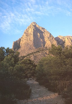 Está emplazada en el término municipal de “Finestrat” y a tan sólo 10 Kms. de la costa. En su punta cónica presenta dos cimas; hablaremos de la que está situada en poniente.