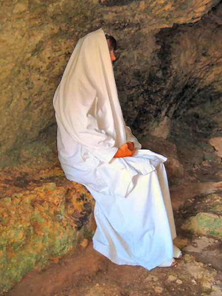 Túnica con mangas confeccionada con tela blanca que no se ciñe con cordón o cinturón alguno y que se utiliza en los retiros que suelen hacerse a partir del grado de Consagrado de la Orden Santa, y cuya duración es superior a 7 días al año. Va acompañada por el manto de retiro.
